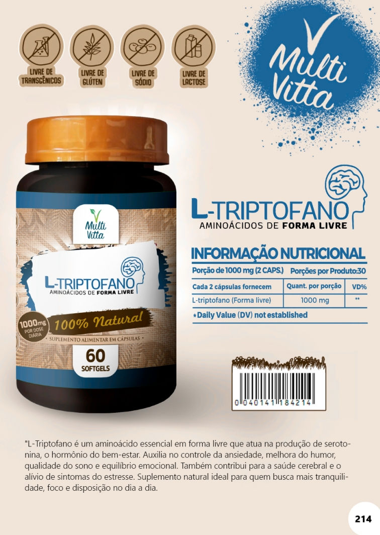 L-TRIPTOFANO AMINOACIDOS DE FORMA LIVRE 60 CAPS MULTIVITTA