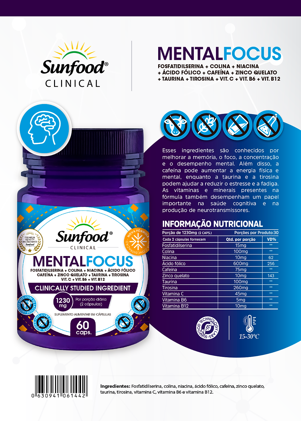 MENTALFOCUS 1230MG 60CAPS SUNFOOD CLINICAL