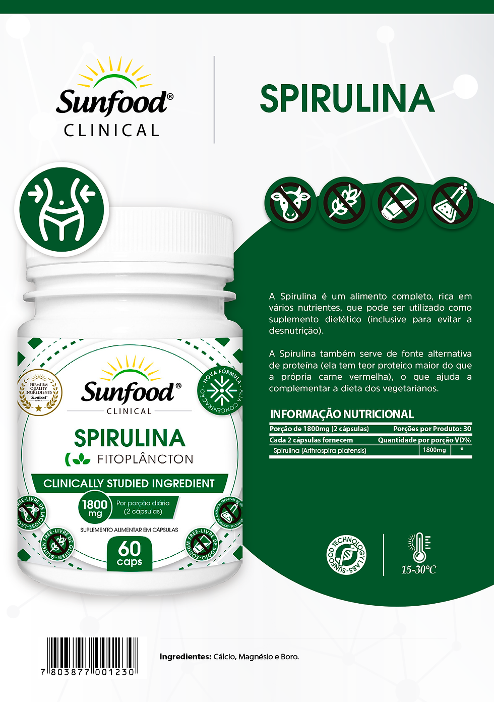 SPIRULINA FITOPLANCTON 1800MG 60 CÁPSULAS SUNFOOD CLINICAL