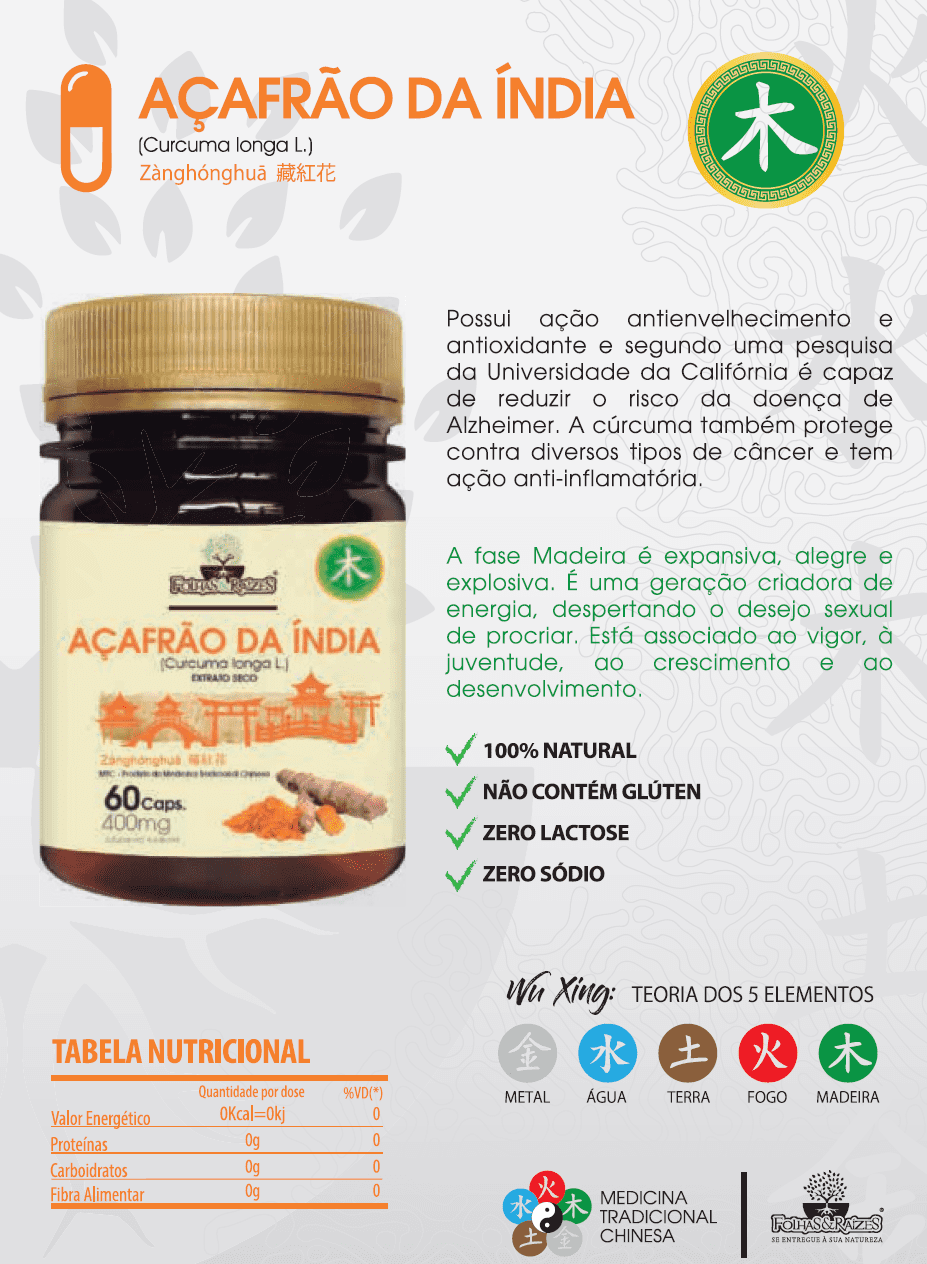 AÇAFRÃO DA INDIA 400MG 60CAPS FOLHAS E RAIZES