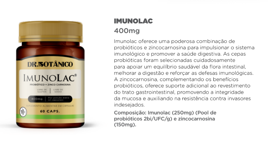 IMUNOLAC (PROBIOTICO + ZINCO CARNOSINA) 400MG 60CAPS - DR. BOTANICO