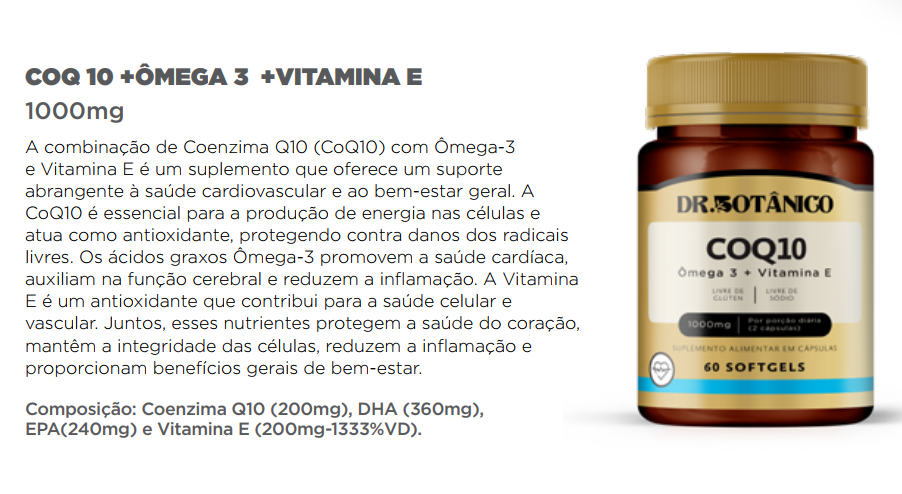 COQ10 + OMEGA 3 + VIT. E 1000MG 60 SOFTGELS - DR. BOTANICO